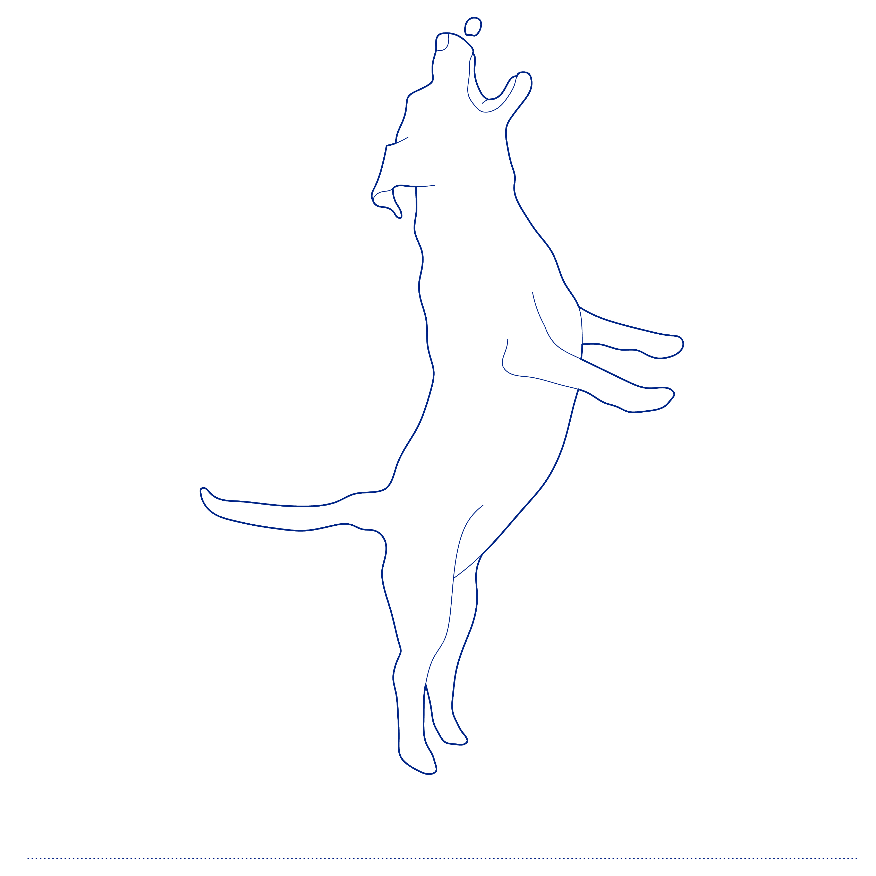 The jumping dog is a dynamic, energetic entourage figure suited to presentation drawings of residential gardens, parks, open spaces and any outdoor environment where the active presence of dogs communicates a sense of vitality and family-oriented use. A dog in mid-jump is one of the most recognisable animal movements and immediately signals an outdoor, inhabited and active space to viewers of an architectural drawing. Animal entourage figures of this type are particularly valued in landscape architecture, rural and agricultural planning, masterplan presentations and any architectural drawing context where the presence of dogs in or adjacent to the designed environment is part of the spatial narrative. A correctly scaled dog silhouette in a site plan or section drawing immediately communicates the scale and character of the surrounding landscape to clients, planning authorities and design review panels.